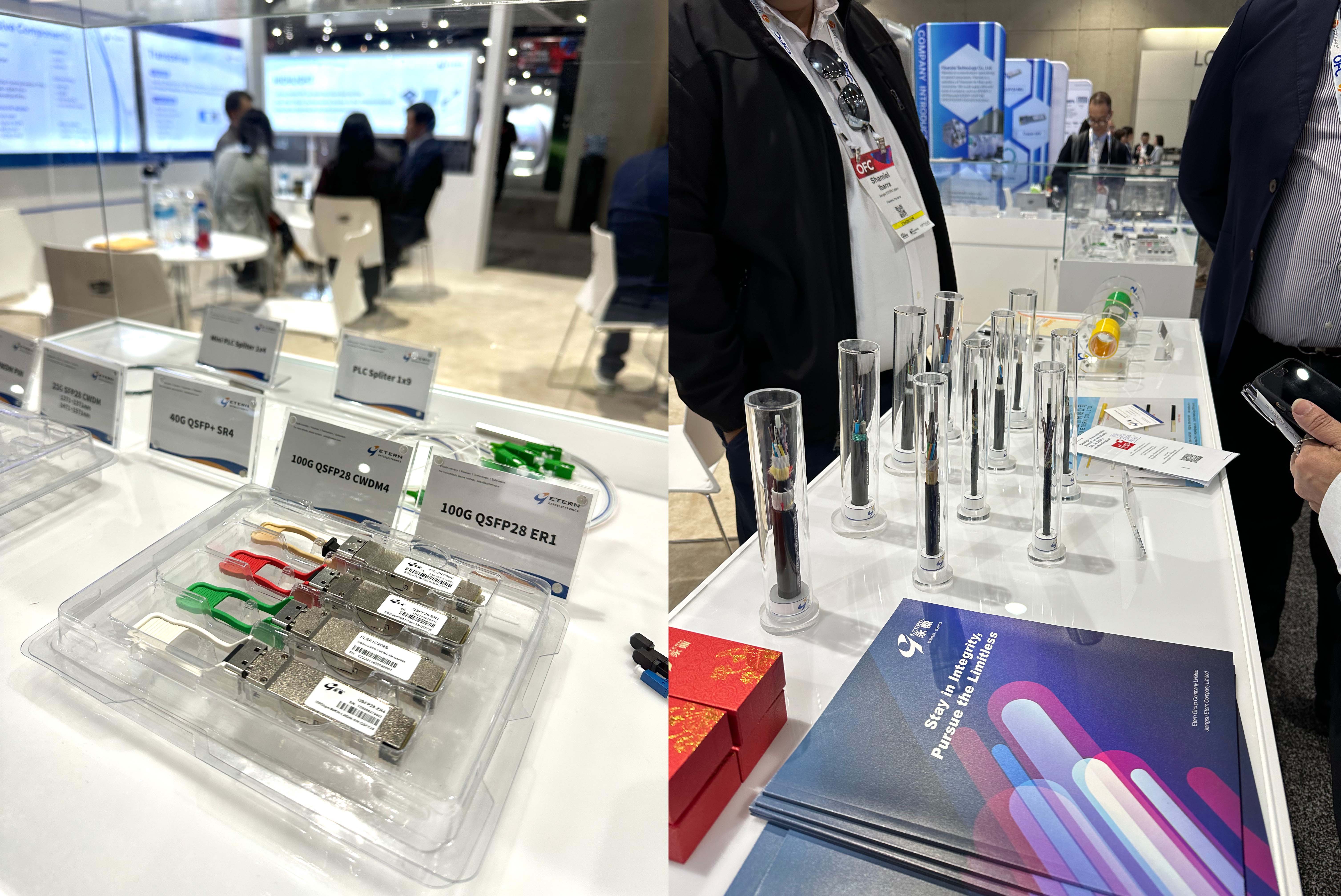 永鼎對外展示了光芯片、光無源器件、光模塊、光纖、光纜等產品及連接方案。受益于ChatGPT和Sora等大型AI算力模型及設備的快速發展,高速連接及高速光模塊產品技術、以及研討會議成為當下熱議話題。永鼎不斷提升產品創新、研發及生產優勢,努力推動全球光通信技術發展。