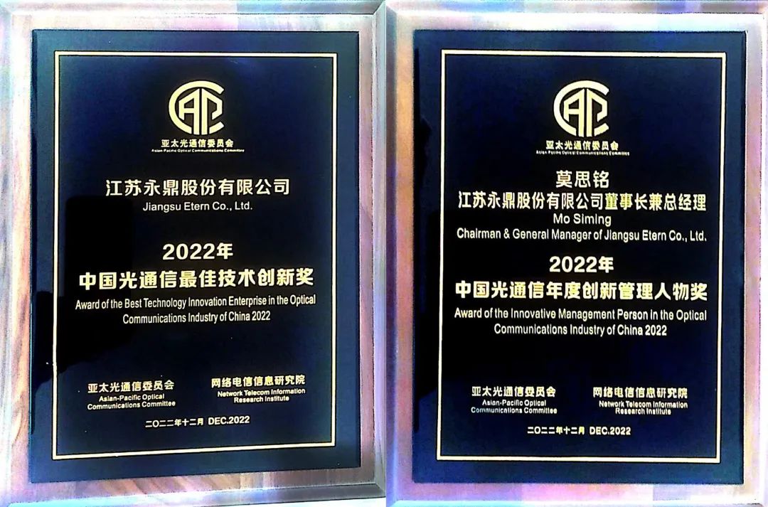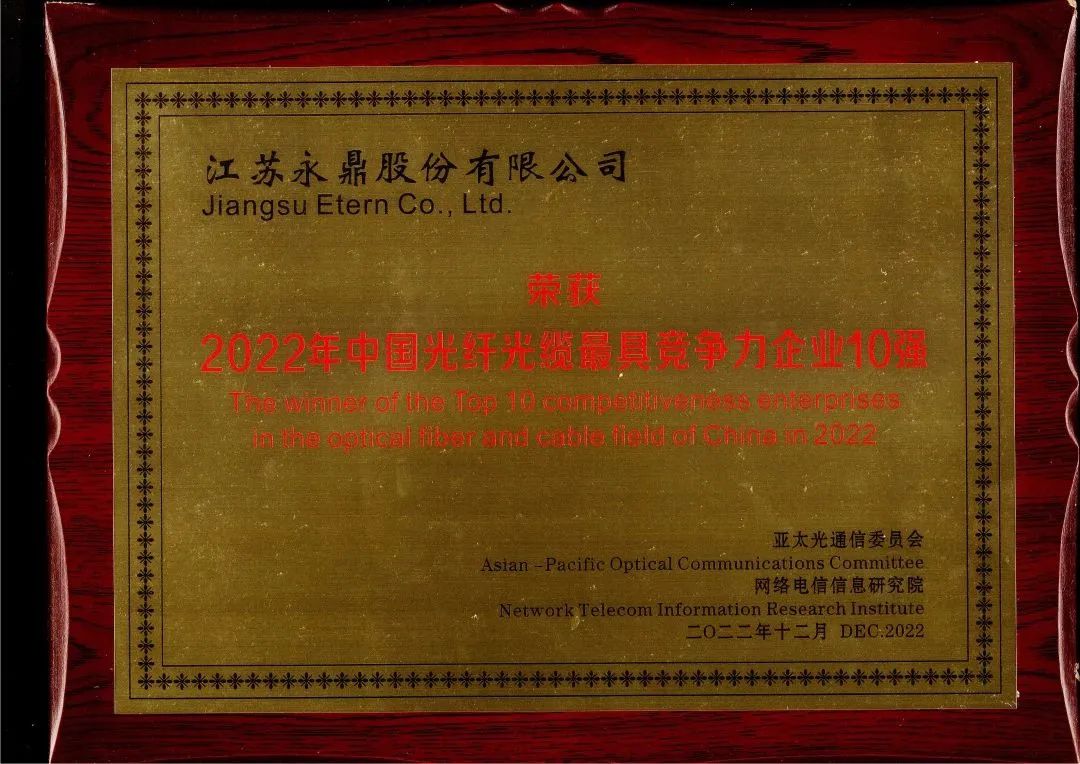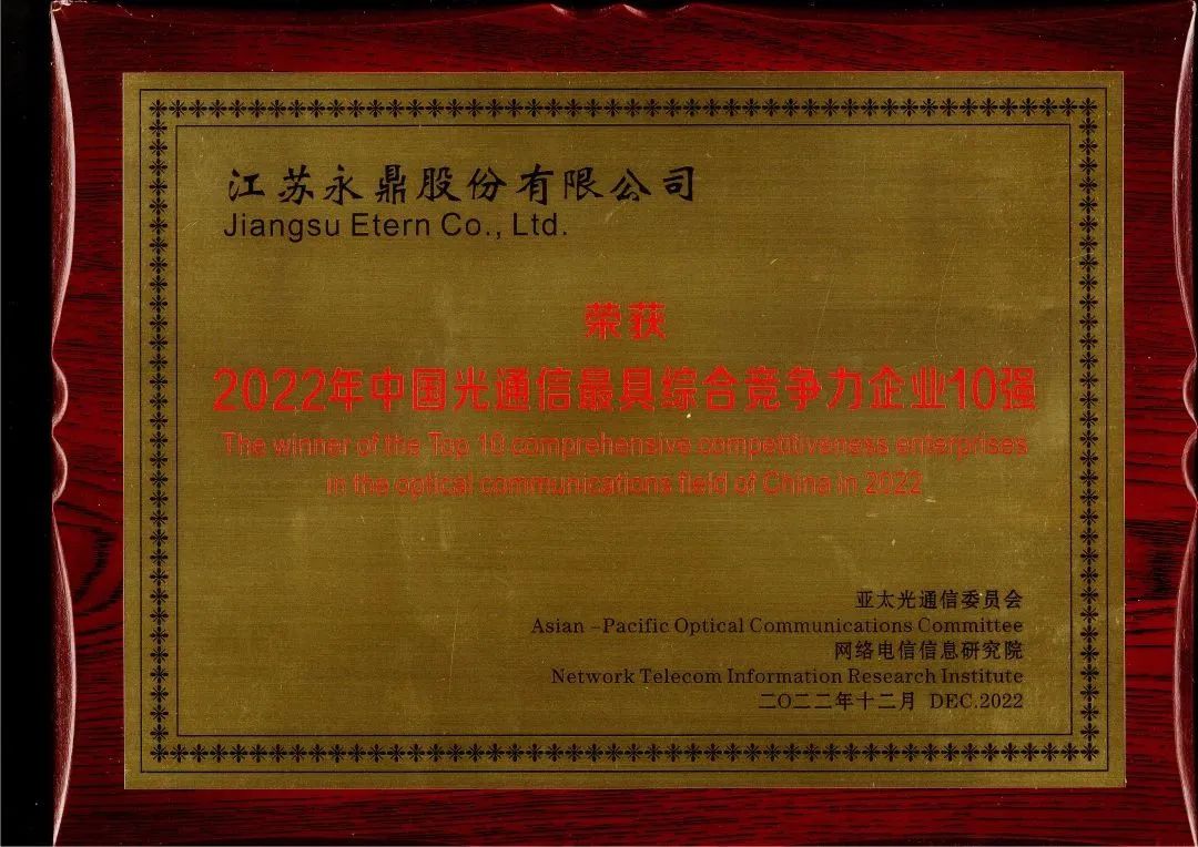 經亞太光通信委員會專家綜合評審,永鼎股份憑借卓越的綜合競爭力,連續十六年進入中國光通信和光纖光纜最具綜合競爭力企業10強榜單。作為光通信領域的行業領軍企業之一,永鼎股份榮登“2022年(第十六屆)中國光纖光纜最具競爭力企業10強”榜單,位列第6名;“2022年(第十六屆)中國光通信最具綜合競爭力企業10強”榜單,位列第7名;斬獲“2022年中國光通信最佳技術創新獎”。永鼎股份董事長莫思銘榮獲“2022年中國光通信年度創新管理人物獎”。