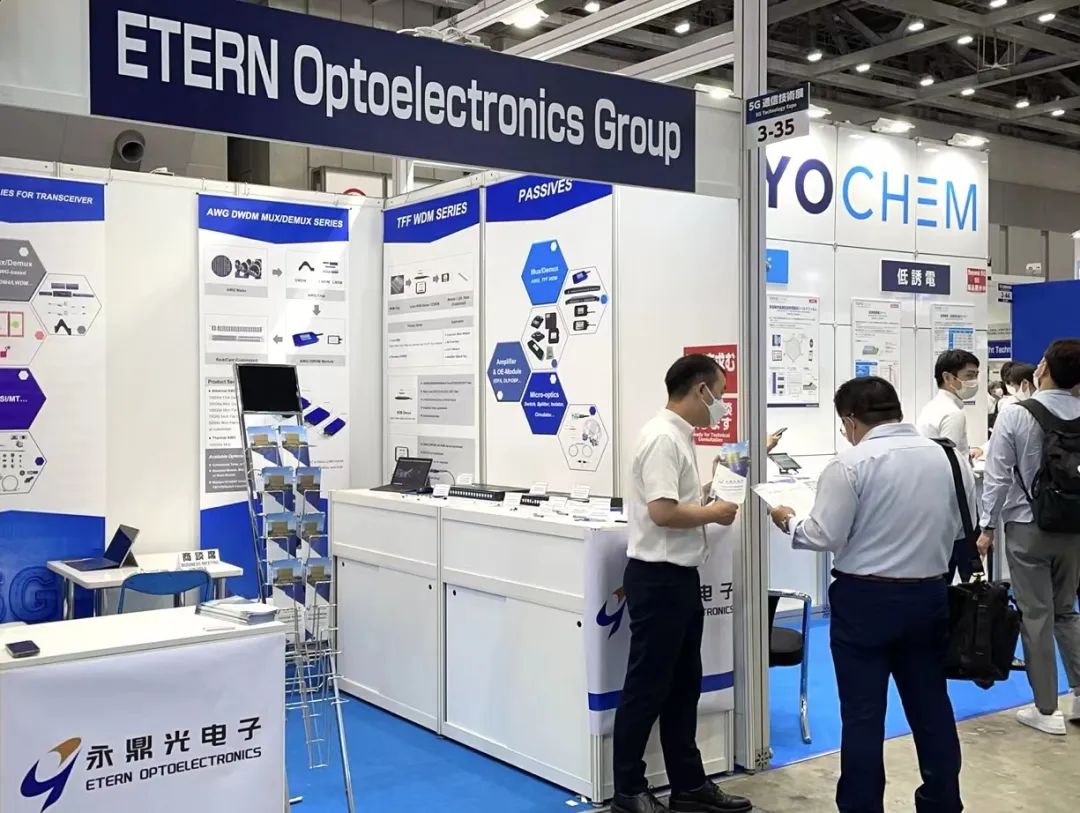 永鼎光電子秉承永無止境的開拓精神,克服疫情困難,積極參加此次盛會。作為一家專業從事研發、生產及銷售光無源芯片及器件、激光器芯片及光模塊、子系統的制造商,永鼎光電子展出了最新的WDM系列產品,包含自主芯片技術的TFF與AWG兩大平臺以及25G 10G全系列WDM彩光模塊,特別是應于5G網絡前傳應用解決方案,吸引了日本乃至周邊東南亞市場客戶們的極多關注。同時展出的其它MT、MPO、4CH/8CH AWG,也有眾多專業領域客戶來訪來詢。